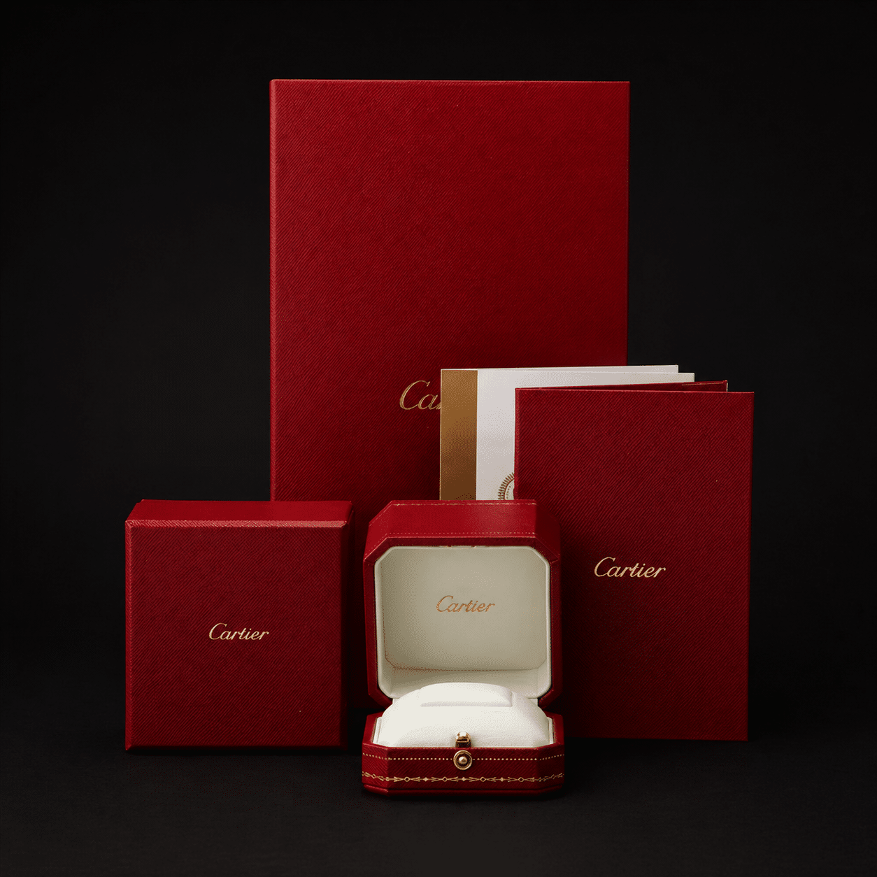 Zum Lieferumfang gehören das originale Cartier Zertifikat, die Cartier Box sowie ein zusätzliches GIA Diamant Zertifikat, das die hohe Qualität des Diamanten offiziell bestätigt.