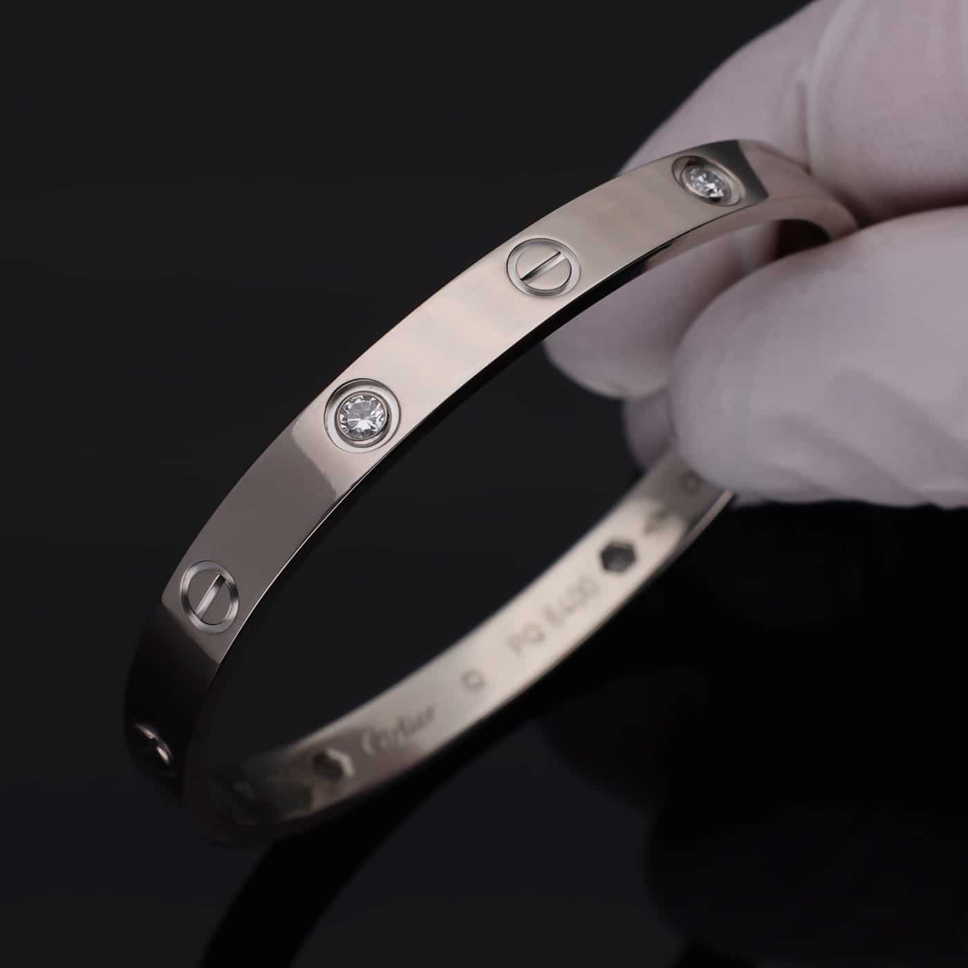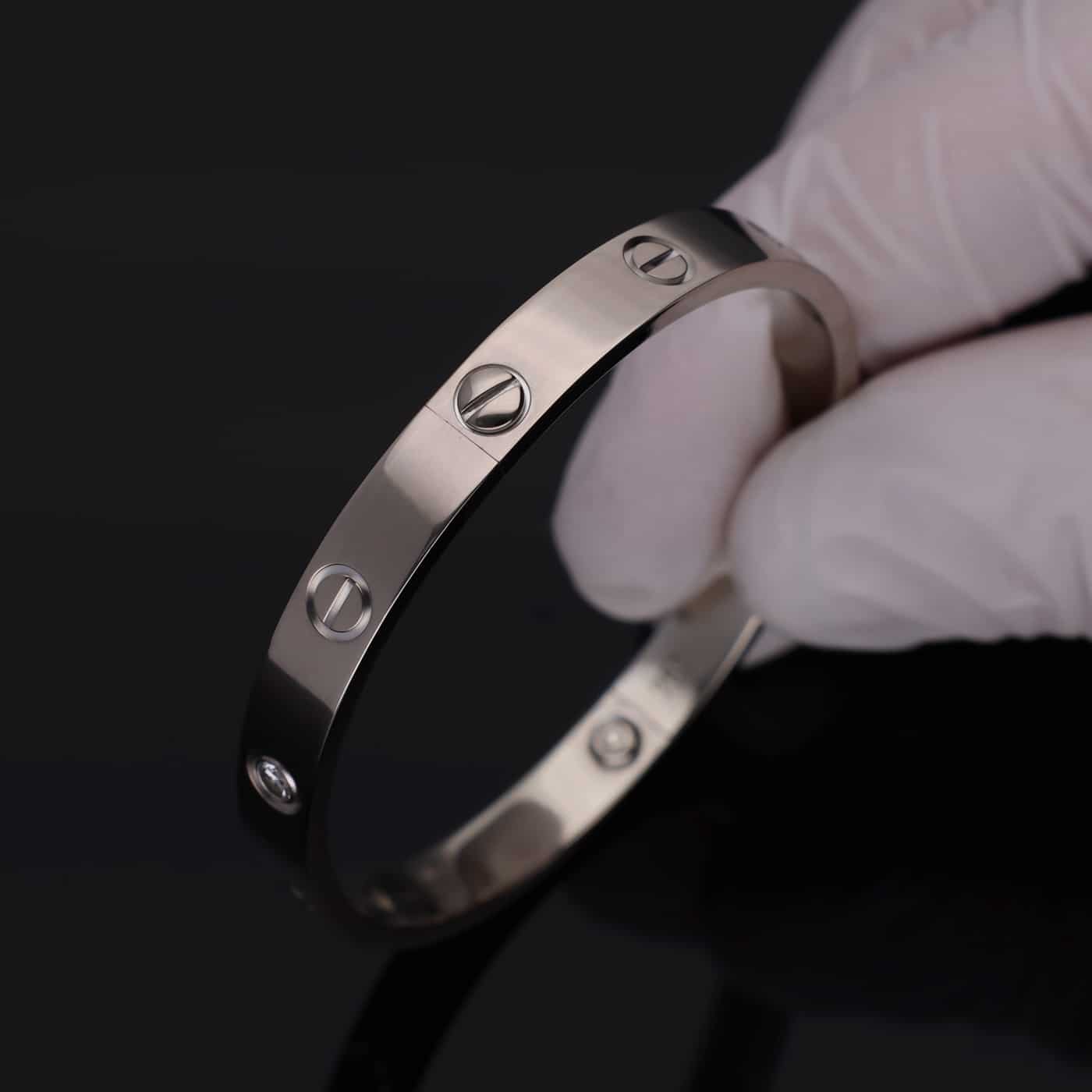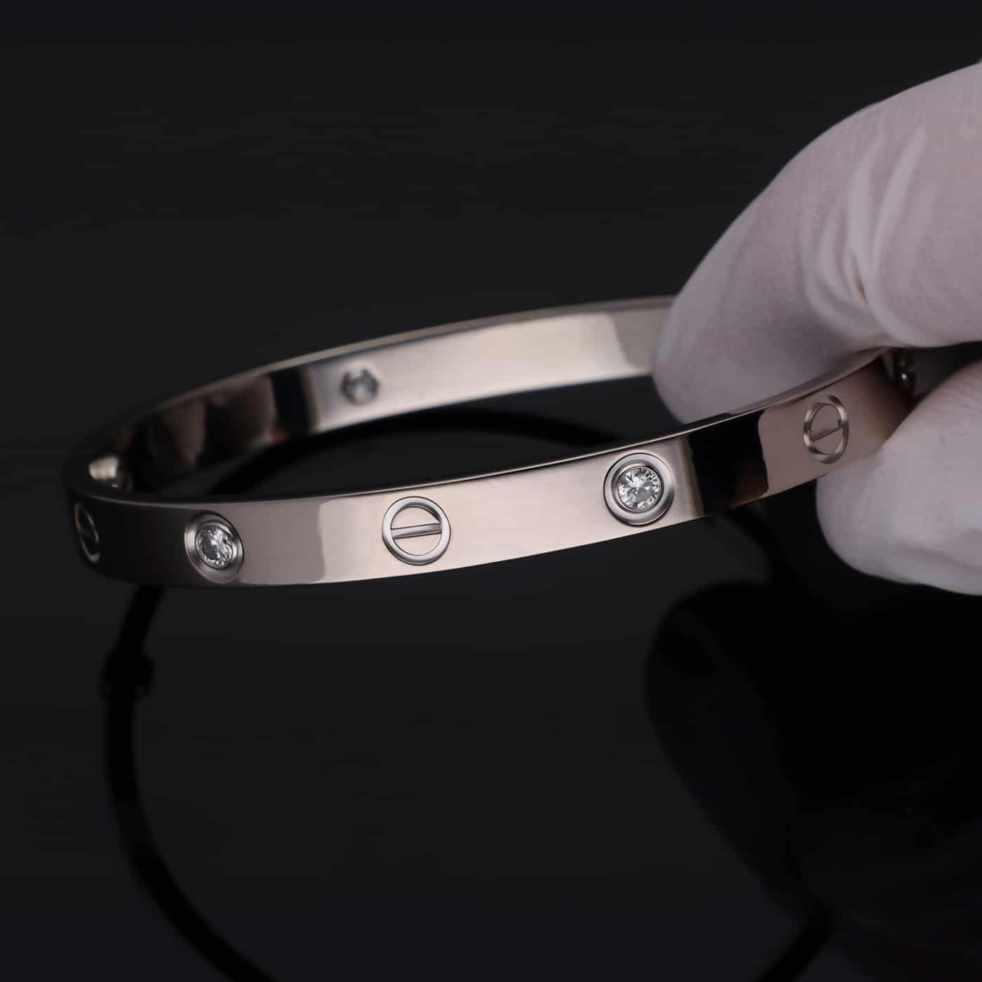 Cartier Love Armreif, klassisches Modell, mit vier Diamanten Weißgold 750 Größe 17