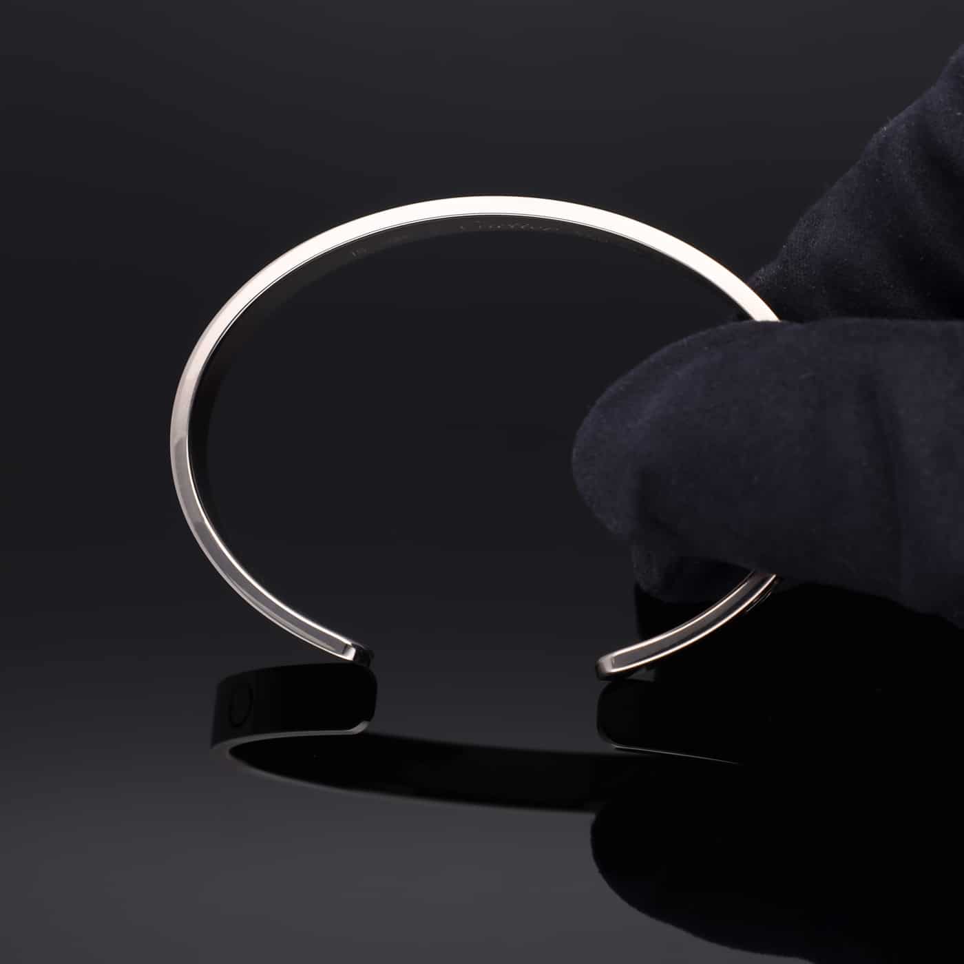 Dank der offenen Form ist er besonders komfortabel zu tragen und lässt sich leicht anlegen. Der Armreif besteht aus hochwertigem 18 Karat Weißgold und besticht durch seine erstklassige Verarbeitung.