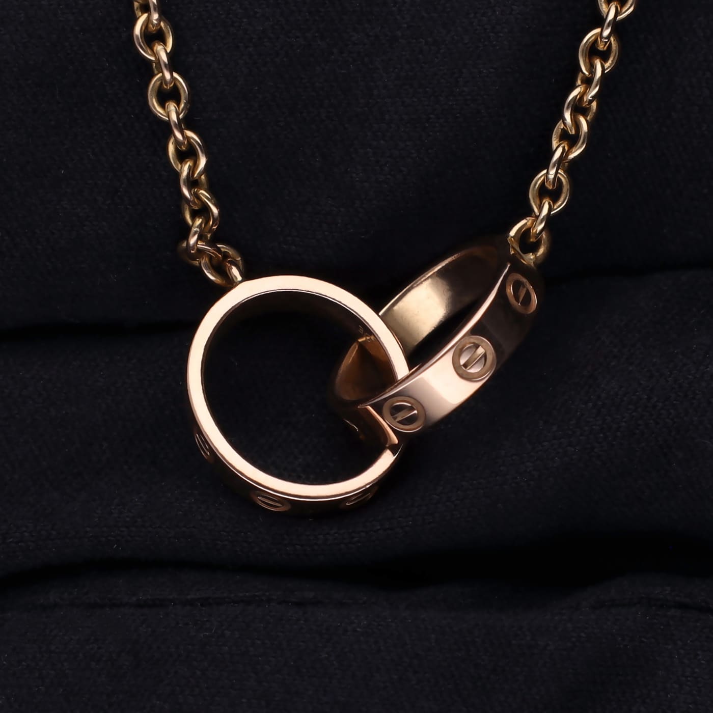 Die Cartier Love Halskette aus 750er Rosegold ist ein zeitloses Schmuckstück, das Eleganz und Stil verkörpert.
