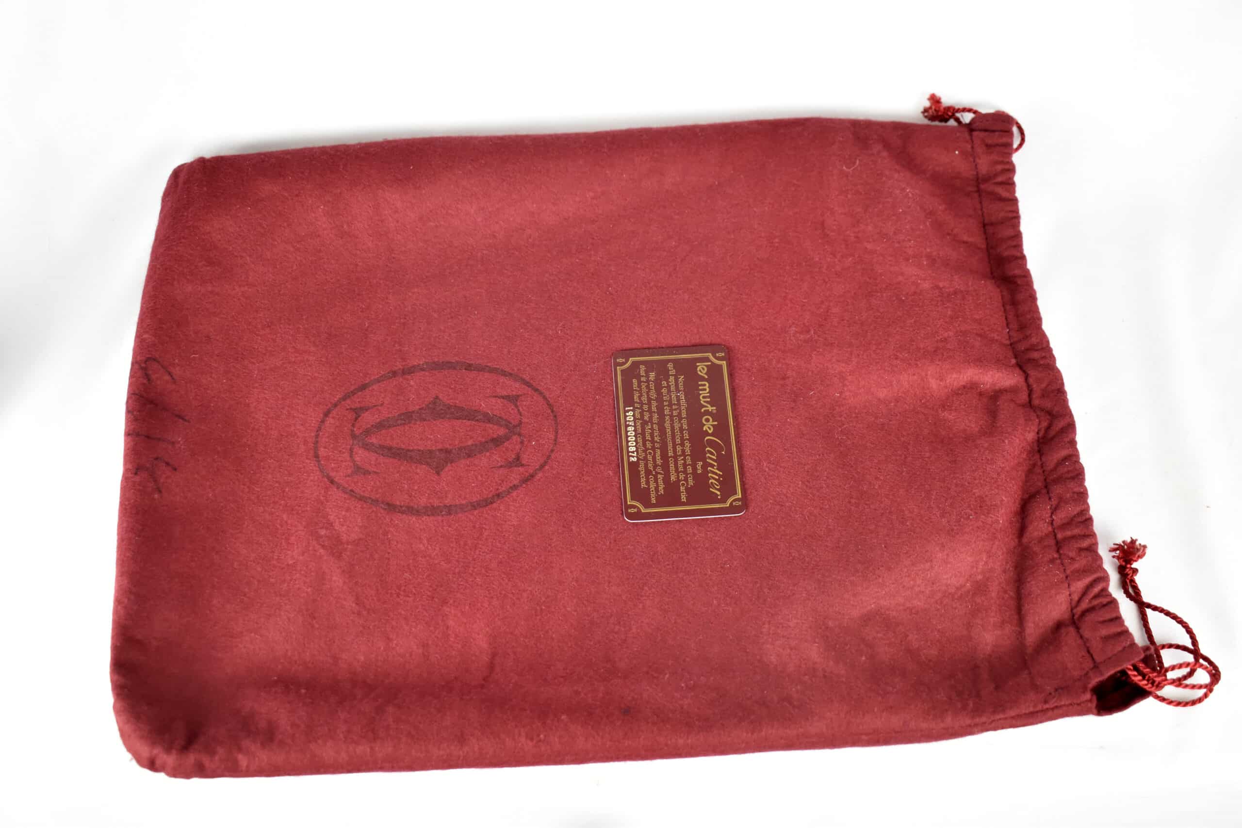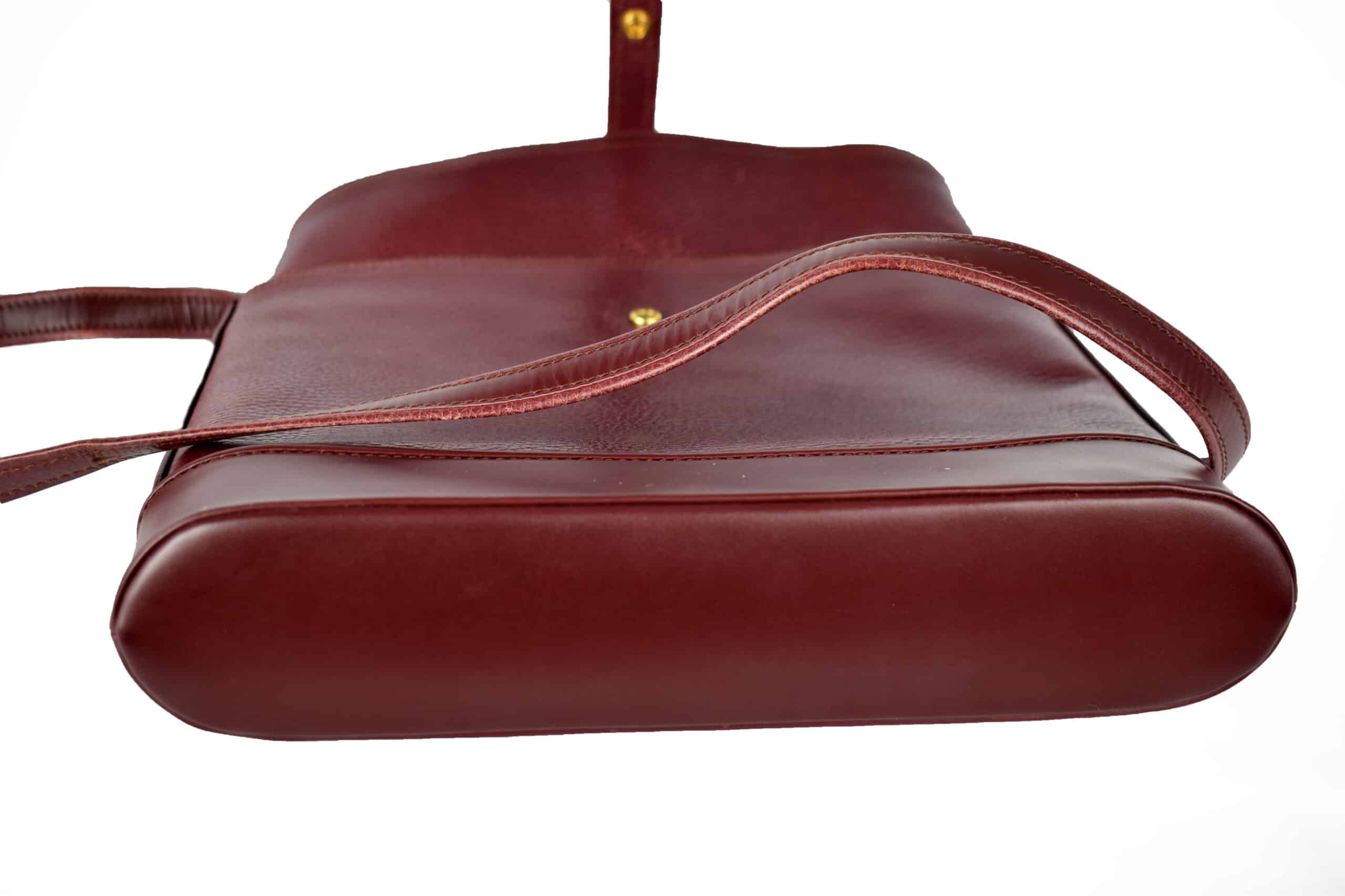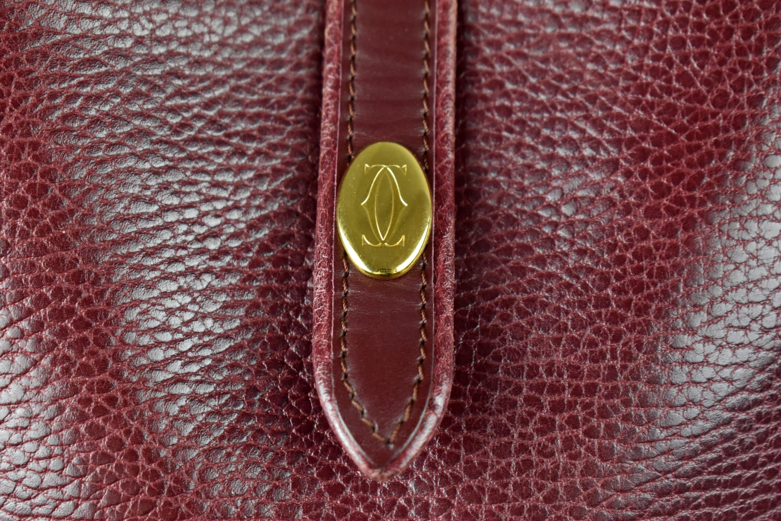Elegante Cartier Must Line Schultertasche in edlem Bordeaux. Die Tasche überzeugt durch ihr zeitloses Design und die hochwertige Verarbeitung, für die Cartier bekannt ist. Sie befindet sich in gutem Zustand und weist keine nennenswerten Beschädigungen auf. Ein stilvolles Accessoire für Alltag und besondere Anlässe.