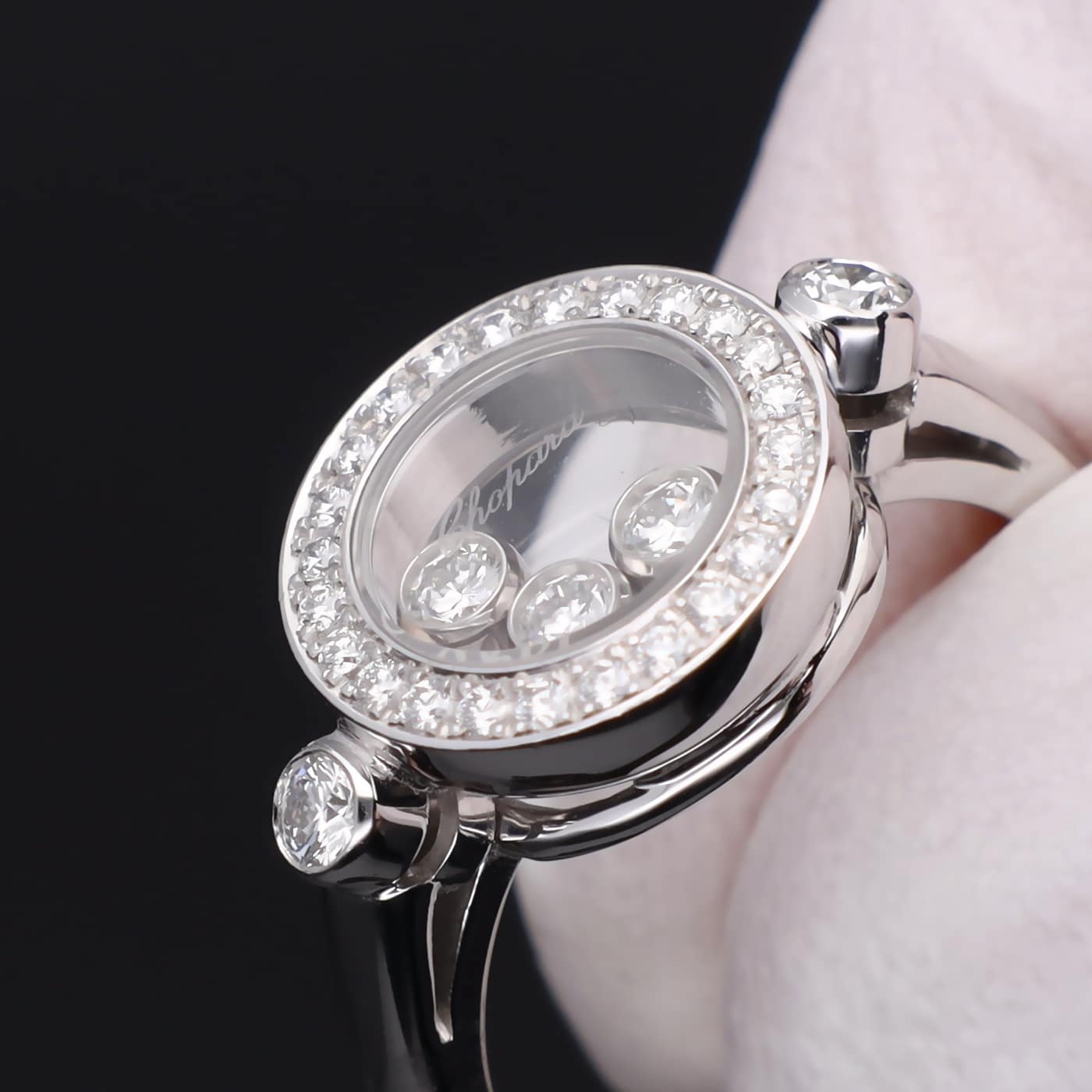 Gefertigt aus edlem Weißgold und im neuwertigen Zustand, verkörpert dieser Ring zeitlose Eleganz und die unverkennbare Raffinesse der Marke Chopard – ein Meisterwerk für Liebhaber luxuriöser Schmuckkunst.