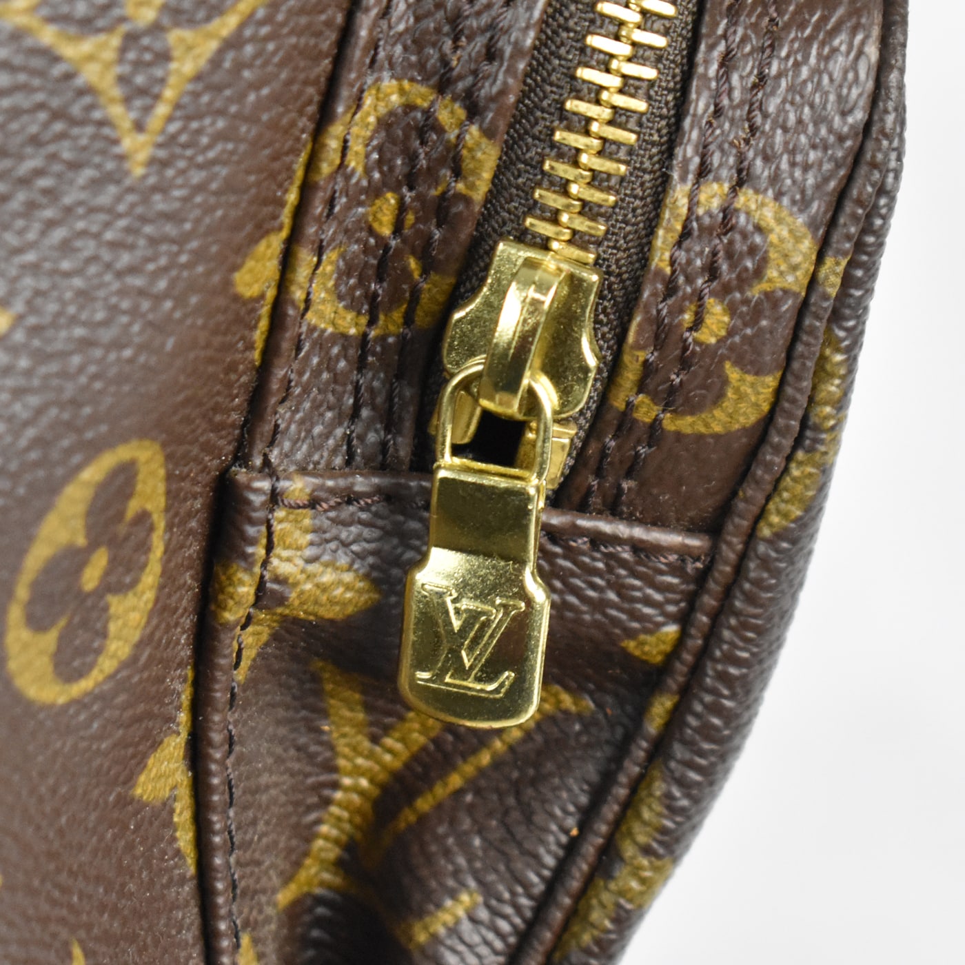 Der Louis Vuitton Montsouris GM Rucksack aus Monogram Canvas überzeugt durch seinen zeitlosen Look und großzügigen Stauraum. Das Monogram Canvas befindet sich in sehr gutem Zustand. Auch das Leder ist überwiegend sehr gut erhalten; lediglich am oberen Taschenrand sind vereinzelt kleine Risse vorhanden. Das Zugband zeigt einen guten Zustand.